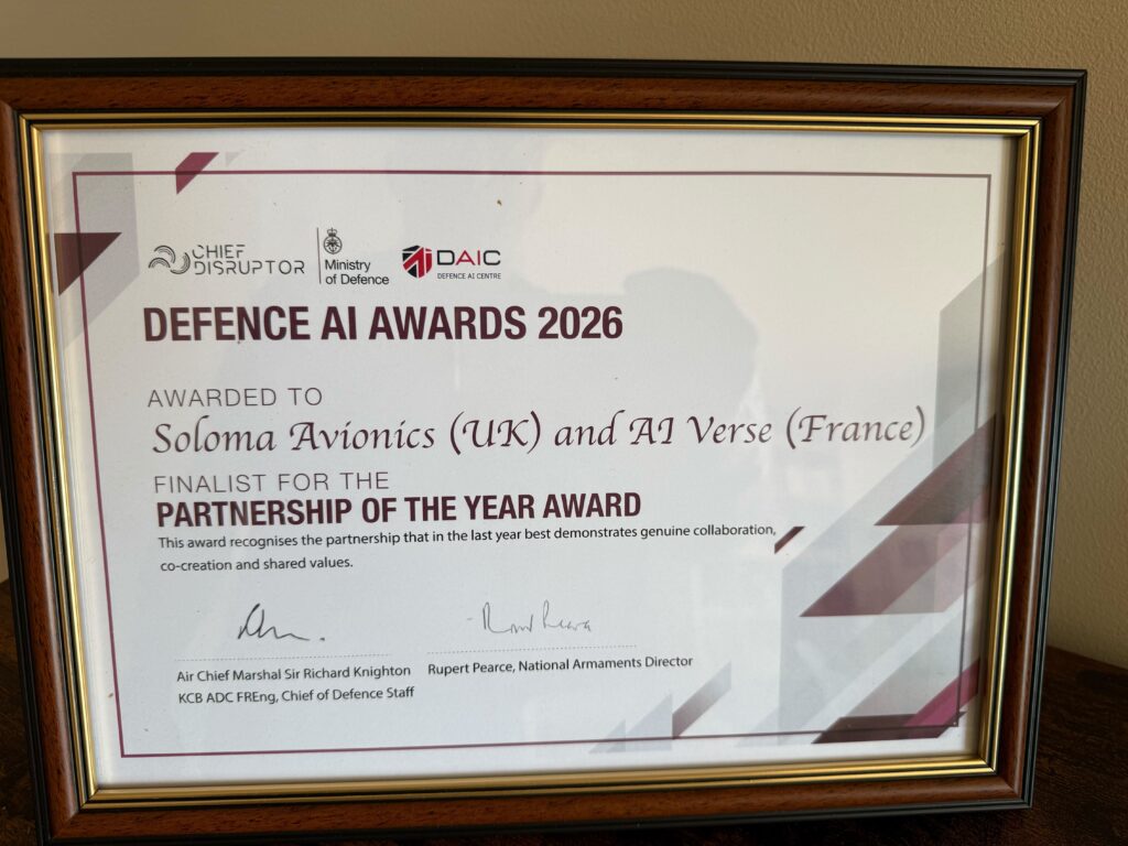 AI Verse and Soloma Avionics are Finalists for DAIC Partnership of the Year Award